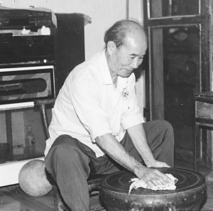 韋萬(wàn)義在精心保護(hù)銅鼓