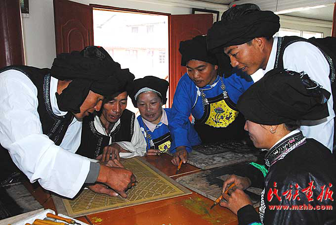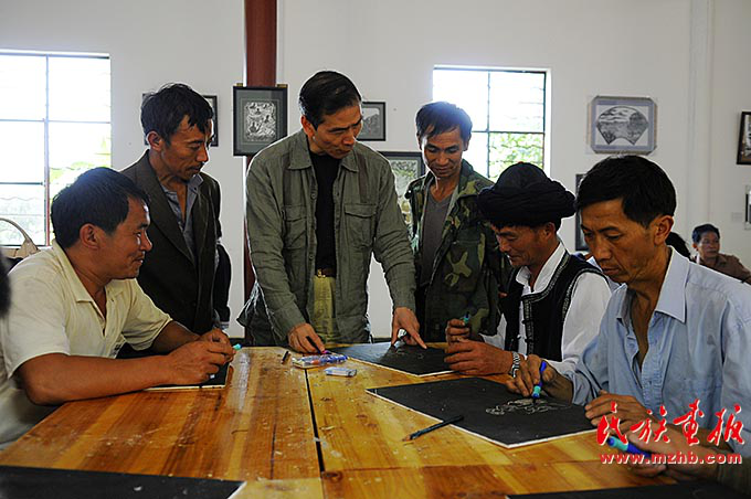 為了提升作品質(zhì)量,阿峨新寨村的版畫創(chuàng)作者邀請專家對其進行藝術(shù)指導