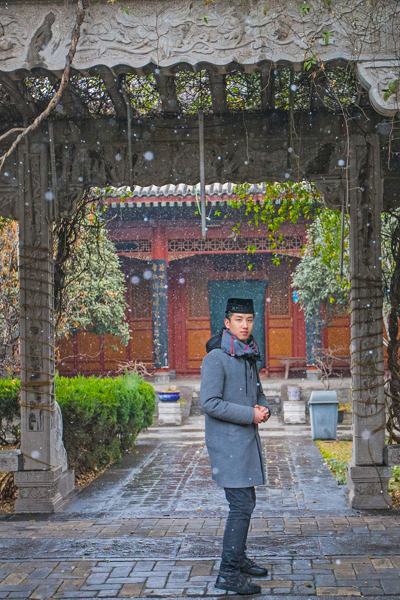 走出寺門,小雪還在飄灑,一直陪同我們的盛志明臉上綻開了笑容: