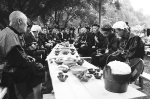 秋收開鐮“祭薩”活動上,當?shù)囟弊迦罕妵艋鸩雀杼?/span>