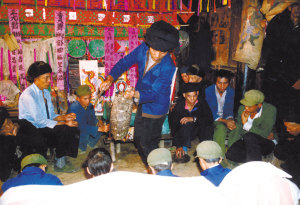 夜晚,在受戒者家里,師父為受戒者跳起“扁鼓舞”