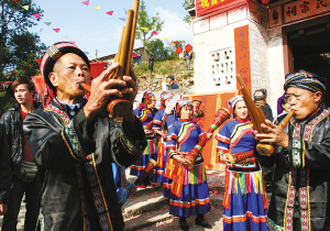 2011年11月11日,在廣西壯族自治區(qū)恭城瑤族自治縣觀音鄉(xiāng)水濱村,瑤族同胞舉行了古老的祭祀儀式。當(dāng)日逢農(nóng)歷十月十六日,是瑤族、苗族和畬族同胞共同的始祖盤王的生日。數(shù)千名瑤族群眾和游客載歌載舞,共度“盤王節(jié)”。