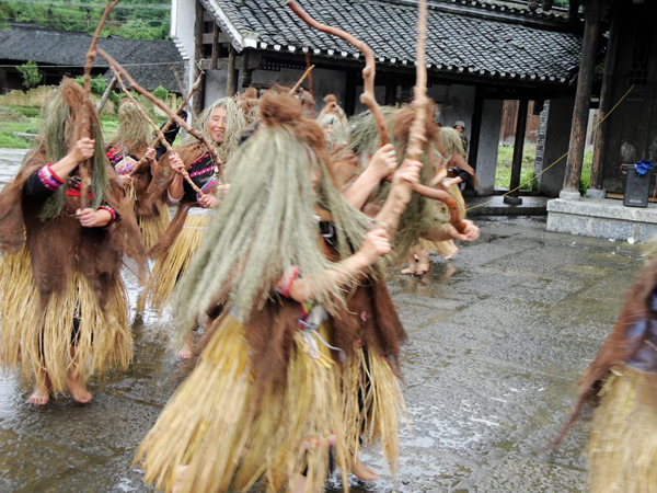 圖為湖南省花垣縣邊城鎮(zhèn)隘門(mén)村土家族毛古斯舞表演 老鐵供圖