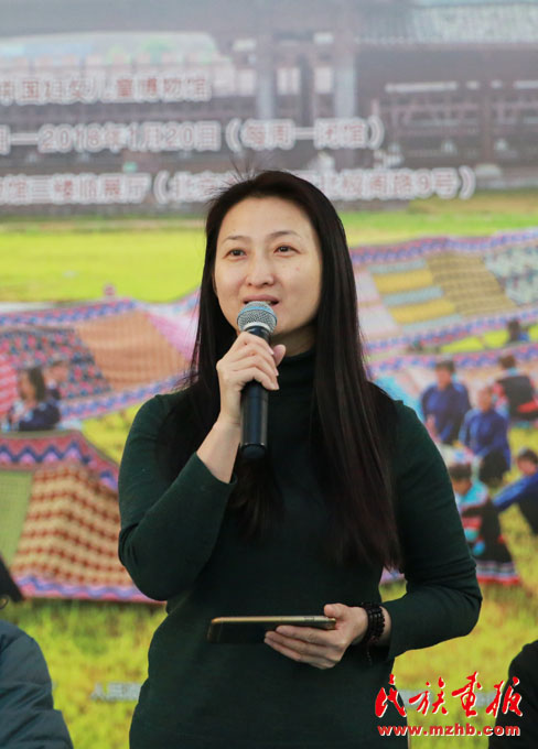 會上中國民族博物館黨委副書記、副館長張志文向少數(shù)民族作家們介紹了展覽,他說:“土家族是一個歷史悠久的民族,現(xiàn)在有835萬人口。土家織錦也有兩千多年的發(fā)展歷史,有250多種傳統(tǒng)圖案,是中國民間五大織錦之一,堪稱中國服飾文化中的奇葩。中國民族博物館從歷年征集收藏的300多幅清代以來的土家織錦中,選取了156幅精品土家織錦、21分鐘傳承人視頻和120余幅土家民族風(fēng)情照片。我們和中國婦女兒童博物館合作舉辦了這個高品質(zhì)的專題展,旨在傳承和弘揚(yáng)土家族國家級非物質(zhì)文化遺產(chǎn)。”
