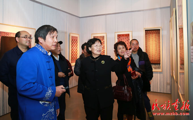 座談會上,中國民族博物館副館長張志文介紹說:土家族是一個(gè)古老的民族,有著4000多年的文明發(fā)展史。土家族在全國有2個(gè)自治州、8個(gè)自治縣,人口達(dá)835萬。土家織錦從秦漢時(shí)期萌芽,歷經(jīng)賨布、溪布、斑布、土錦等幾個(gè)發(fā)展階段,在明、清時(shí)期開始定型,至今已有2000余年的燦爛歷史。中紀(jì)委駐財(cái)政部紀(jì)檢組原組長、全國婦女手工編織協(xié)會副會長賀邦靖說:土家織錦是土家婦女智慧的結(jié)晶,是武陵山區(qū)文化精準(zhǔn)扶貧的重點(diǎn)項(xiàng)目之一。從這個(gè)展覽上我們不僅可以看到土家織錦的燦爛與美麗,還可以看到國家實(shí)施文化精準(zhǔn)扶貧的實(shí)效。