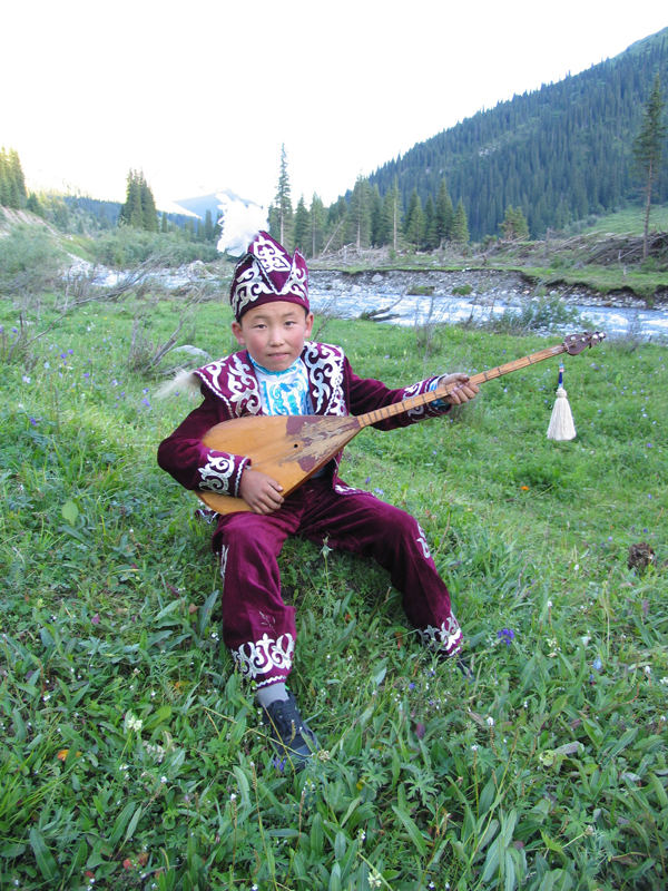 哈薩克族的音樂極具民族特色,樂器種類和樂曲形式也非常豐富?!岸焕睘閺椬鄻菲鳎枪_克族民間最流行的傳統(tǒng)樂器,分為高、中、低等十幾種。冬不拉易學(xué)易帶,深受廣大哈薩克族人民的喜愛。拉奏樂器以“柯布孜”為代表,演奏起來聲音類似小提琴,但形狀要比小提琴?gòu)?fù)雜,其上端向里彎,琴腹如勺,腹面張開,背面蒙有羊皮,琴弦是用馬尾或牛筋制做而成的。吹奏樂器主要有“斯伯孜俄”,民間藝人喜好并擅長(zhǎng)使用此物,被哈薩克族譽(yù)為“心笛”。這種樂器外形酷似豎簫,音色悠揚(yáng)而柔和。哈薩克族的打擊樂器也有很多,極有特色的是“阿迪托亞克”。這種打擊樂器由兩個(gè)組成一對(duì),演奏時(shí)互相擊打,其外形似馬蹄,加之所奏出的效果也像馬蹄踩在地面上的聲音,哈薩克族稱之為“馬蹄音”。