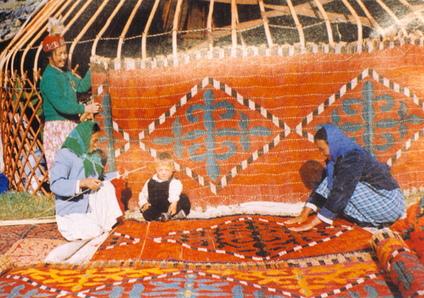 與此同時,民間藝術(shù)是滿載著人民情感的載體,也是表達情意的信物。手工制作中的一針一線都融入了濃濃的深情和深深的愛意。哈薩克族民間藝術(shù)還有一個重要功能就是美化和裝飾。各類具有哈薩克民族特色的藝術(shù)品主要集中陳設(shè)在氈房中,氈房不僅是哈薩克族家庭生活的主要場所,也是人們賴以生存的空間,住所內(nèi)裝飾和陳設(shè)的各類民族藝術(shù)作品一方面充分展現(xiàn)了哈薩克族民間生活藝術(shù)的不同品類,另一方面也體現(xiàn)了哈薩克族人民生活的各個方面??偠灾_克族民間藝術(shù)體現(xiàn)了哈薩克族博大精深的民族文化,應(yīng)使之得以傳承與發(fā)揚。