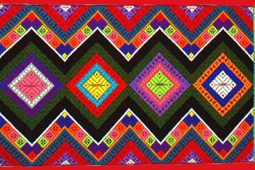 傣錦,即傣族的織錦,是一種古老的、全手工的傣族傳統(tǒng)工藝品,已被公布為第二批國家級非物質文化遺產名錄之一。其織工精巧,圖案別致,花紋鮮明,堅實細密,極具民族特色和地域風情。其花紋題材豐富、變化繁多、顏色絢麗,是傣族人民進行宗教活動以及日常生活中不可或缺的。傣錦保留和體現(xiàn)了傣族特有的民族文化以及地域特征,在云南的少數(shù)民族織錦中獨樹一幟,享有著很高的聲譽。