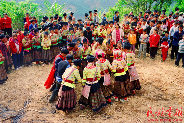 德昌傈僳族婚禮上男女青年的“打跳”“蹢腳舞” 胡小平攝影 引自民族畫(huà)報(bào)