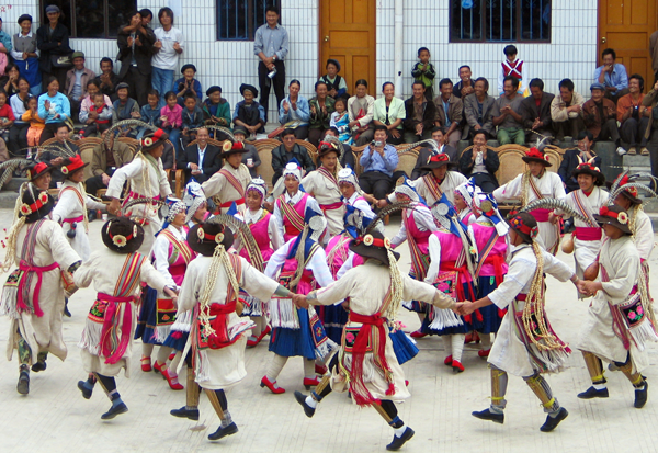?。?)反映風(fēng)俗禮儀的舞蹈。主要有婚禮舞?;槎Y舞主要流行于云南怒江、保山、德宏等地區(qū)傈僳族中,是在舉行訂婚、結(jié)婚的喜日儀式跳的一種群體舞。跳時(shí)男女分開(kāi),面對(duì)面排列成兩排,以一定的步伐和有力的跺腳、踏步為拍,有時(shí)并列前進(jìn),或交叉進(jìn)行,有時(shí)一進(jìn)一退,互相呼應(yīng)。其舞步重在腳下功夫,動(dòng)作簡(jiǎn)單、重復(fù),但一旦起舞,情動(dòng)于中,熱烈非凡。
