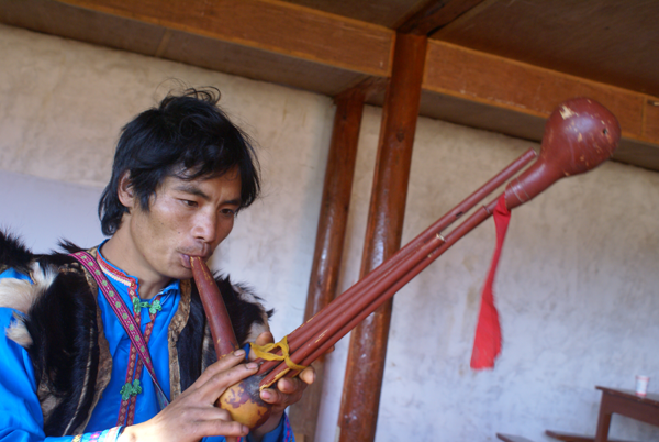 傈僳族民間器樂(lè)藝術(shù)具有獨(dú)特的民族風(fēng)格和特色,在傈僳族民間音樂(lè)中有重要地位。其種類主要有琵琶(劉軍攝)、口弦、竹笛、葉笛、葫蘆笙(劉軍攝)、二胡等。