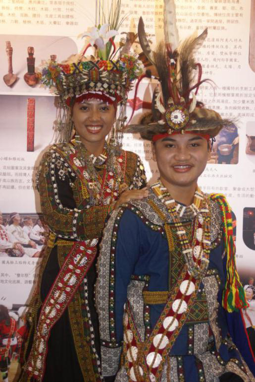 高山族過(guò)去以裸身為美,裸形赤足,僅以獸皮、樹(shù)皮及植物纖維制作的幅布蔽體,有鑿齒、穿耳的習(xí)俗。接觸漢文化后,逐步形成了男著長(zhǎng)衫、女著裙裝的習(xí)慣,衣服除了獸皮和樹(shù)皮外,還喜好用自織麻布,飾以彩色紋樣。