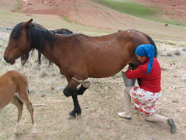 柯?tīng)柨俗稳嗣竦娜粘o嬍硜?lái)源之一——馬奶(劉軍攝)