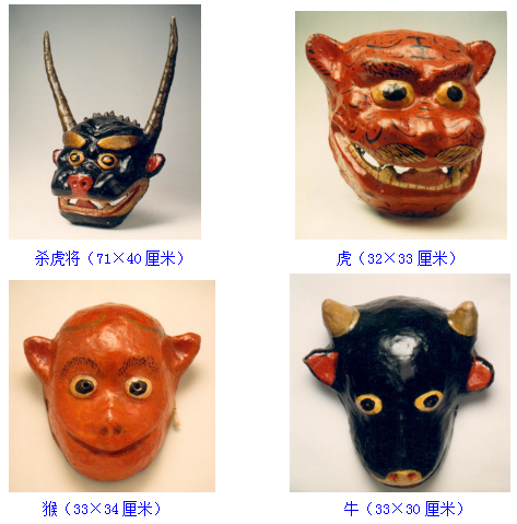 反映三國內(nèi)容的舞蹈有“五官”“三將”“五將”“關老爺”等內(nèi)容。面具角色有劉備、關羽、張飛、曹操、呂布等。表演動作疾緩有序,再現(xiàn)了三國時驍將馳騁疆場的場面。