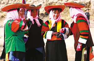 隨著時(shí)代的更替,土族女性的服飾發(fā)生了很大變化,有的傳統(tǒng)服飾已消失,有的服飾經(jīng)過推陳出新,重放光彩。如舊時(shí)的繡花高領(lǐng),如今變成直翻兩用領(lǐng);蓋在“扭達(dá)”上的長頭巾——“扭達(dá)爾秀巾”,變成了今日土族女性使用的短頭巾?,F(xiàn)今,廣大土族女性,不僅喜穿本民族服飾,而且還愛著時(shí)尚服飾,她們或使土族服飾時(shí)裝化,或使時(shí)裝土族服飾化,豐富了土族的服飾文化。