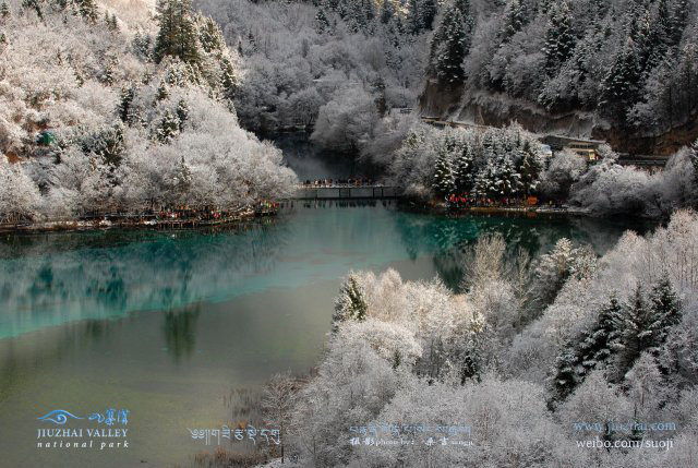 九寨溝位于四川省西北部岷山山脈南段的阿壩藏族羌族自治州九寨溝縣漳扎鎮(zhèn)境內(nèi),年均氣溫6—14℃度,冬無(wú)嚴(yán)寒,夏季涼爽,四季景色各異:仲春樹綠花艷,盛夏幽湖翠山,金秋盡染山林,隆冬冰塑自然。以翠湖、疊瀑、彩林、雪峰、藏情、藍(lán)冰“六絕”著稱于世。