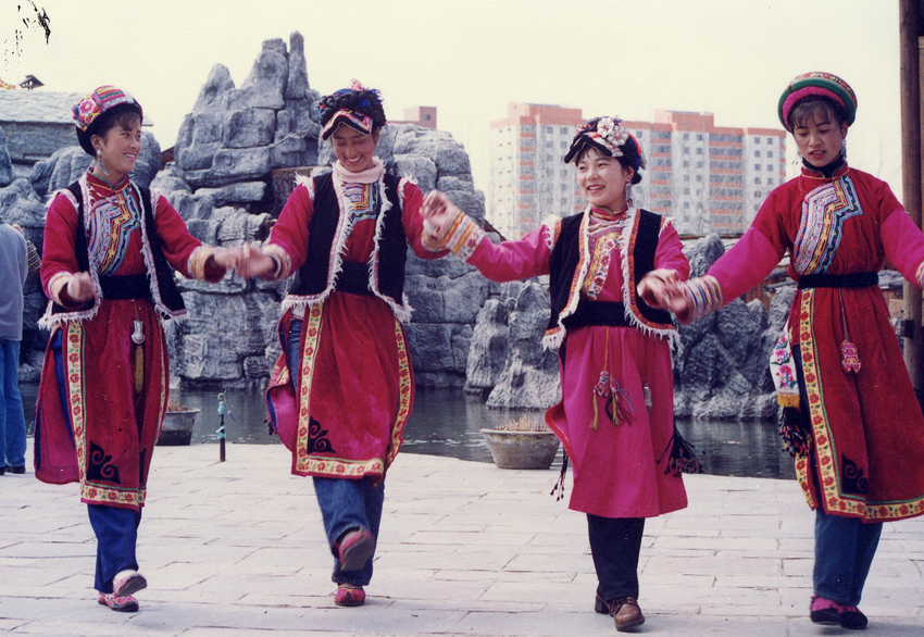 薩朗譯為鍋莊,譯為又唱歌又跳舞,是自?shī)市晕璧?。按照具體場(chǎng)景可分為辦喪事跳的“憂事薩朗”和辦喜事時(shí)跳的“喜慶薩朗”。該舞男女圍著火塘或場(chǎng)院,按照逆時(shí)針?lè)较蜻吀柽吿?。開(kāi)始,先男女輪唱一遍舞曲,然后共同起舞,速度由慢到快,跳到激烈時(shí),領(lǐng)舞男子加快舞步,帶頭交換各種不同的舞蹈動(dòng)作,或雙腿交替重踏,或左右旋轉(zhuǎn),男女相互競(jìng)爭(zhēng),氣氛逐漸熱烈。舞至高潮時(shí),男子叫聲“嚇喂”,女子應(yīng)和“喲喂!”一曲就此結(jié)束,接著再變換新的舞曲和步伐。
