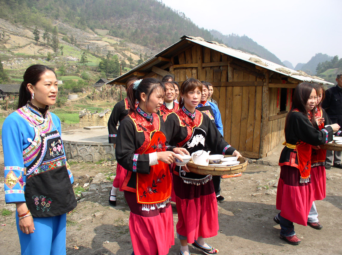毛南族沒有鬧洞房的習(xí)慣?;槎Y當(dāng)晚,新娘和伴娘們同住新房。房里不鋪合歡床,而是鋪兩張床,稱為“鴛鴦床”。女的用深藍(lán)色蚊帳、被單,男的用白色蚊帳、印花被單以示區(qū)別。過去,富有人家甚至還修建“鴛鴦房”,中間開方便門。據(jù)傳,此俗源自洪水神話中盤、古兄妹羞于結(jié)婚的傳說,爾后代代傳之?;槎Y的第二天中午,在新郎家舉行開被儀式,當(dāng)眾展示嫁妝。由新郎家兩位兒女雙全的姑嫂伯娘來開被,每打開一床被,男女歌師各唱一《開被歌》,男的贊揚,女的謙讓,娓娓道來。
