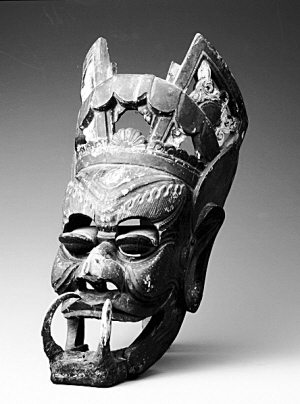 現(xiàn)珍藏于民族文化宮博物館的這件仡佬族儺面具“山王”,清代,長(zhǎng)48厘米,寬20厘米,木質(zhì),征集于貴州道...