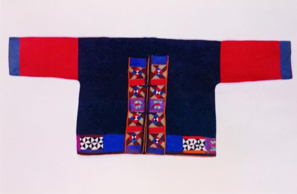 剪花衣又為“縑花衣”,是清末明初阿昌族已婚婦女的一種上衣,主要流行于云南省德宏傣族景頗族自治州梁河縣阿昌族地區(qū)。這種衣服的特點(diǎn)是:毛質(zhì)地,多為深色,長(zhǎng)袖圓領(lǐng)對(duì)襟,釘圓銅扣,前襟和衣服四周均用各種顏色的方形或三角形布片鑲縫成幾何形圖案。中間還夾雜著刺繡花紋圖案。過去,姑娘出嫁與新郎拜堂和年老去世時(shí)都要穿著剪花衣服。前者表示夫妻白頭偕老,生死不離;后者被認(rèn)為到陰間可以和親人相會(huì)團(tuán)聚。久而久之,穿剪花衣成為阿昌族的特定風(fēng)俗。