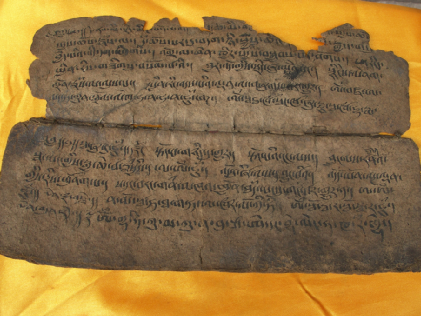 一般認(rèn)為普米族沒(méi)有本民族文字,但歷史上普米族曾使用過(guò)簡(jiǎn)單的圖畫(huà)文字,這是一種萌芽的原始刻畫(huà)文字,見(jiàn)于房屋壁畫(huà)、神龕、法器、房梁等地。現(xiàn)學(xué)界說(shuō)的“韓規(guī)文”是以藏文字母為基礎(chǔ),用以記錄普米語(yǔ)的文字符號(hào)。韓規(guī)文主要用于抄寫(xiě)宗教祭祀經(jīng)文,認(rèn)知度不高,一般只有普米族的巫師“韓規(guī)”才能掌握使用(圖為韓規(guī)文經(jīng)書(shū)殘片,蒙哥提圖)。普米族現(xiàn)今有一套拼音文字,該套拼音文字以寧蒗彝族自治縣新?tīng)I(yíng)盤(pán)鄉(xiāng)牛窩子村的普米語(yǔ)為基礎(chǔ)音,在寧蒗普米傳統(tǒng)文化保護(hù)協(xié)會(huì)及香港大學(xué)丁思志教授的努力下,經(jīng)修訂的拼音文字最終面世,并且有了普米語(yǔ)教材。普米族拼音文字設(shè)計(jì)的構(gòu)想最早是在1995年由香港大學(xué)大學(xué)丁思志教授提出,同年,普米語(yǔ)聲母表首稿完成。該方案歷經(jīng)修改,最終的方案共收錄42個(gè)聲母,能夠滿足各地普米方言的使用需求。近年,丁思志教授又創(chuàng)制了一套有別于拼音文字的新創(chuàng)文字。新創(chuàng)文字是一種表意文字,該套文字以牛窩子普米語(yǔ)為基礎(chǔ)音,以漢字表意,輔之以自創(chuàng)的虛詞而成,從一定程度上超越了普米語(yǔ)言空間限制,解決了不同普米方言區(qū)因?yàn)榭谝舨町惗纬傻慕涣髡系K。