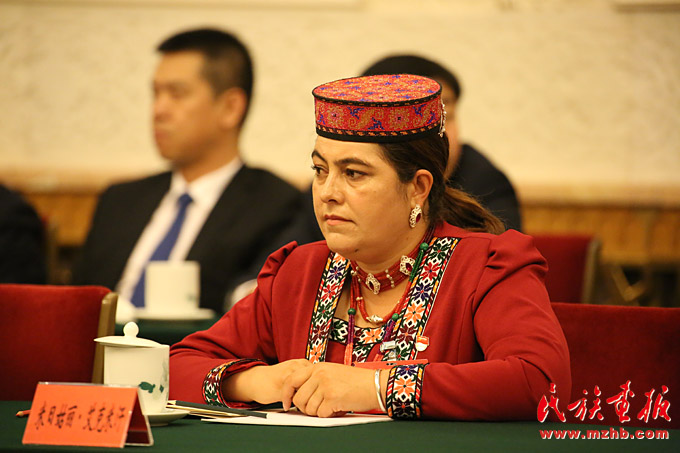十九大代表、新疆塔什庫爾干塔吉克自治縣塔什庫爾干鄉(xiāng)小學(xué)黨支部書記米日姑麗·艾克米汗(塔吉克族)(滕俊攝影)