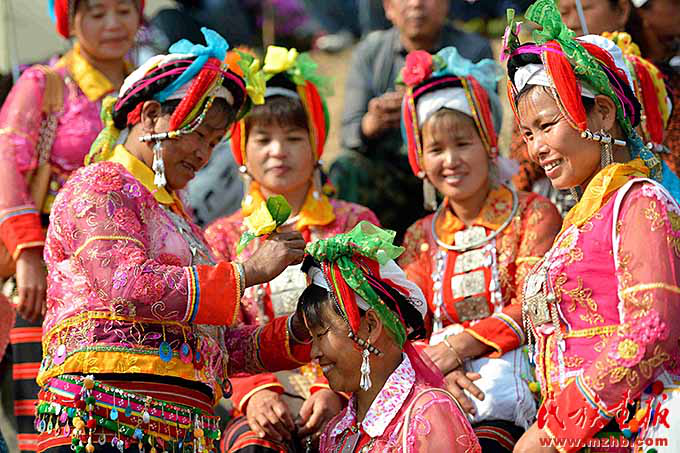 德昂族的澆花節(jié)多在公歷4月中旬左右舉行,一般3-5天。臨近節(jié)日,人們忙著制新衣,做米粑,制好水龍、水桶等潑水工具。