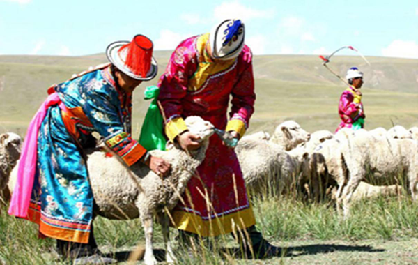 裕固族從事畜牧業(yè)生產(chǎn)已有悠久的歷史。牧民畜養(yǎng)牲畜的種類以羊(綿羊、山羊)、牛(分牦牛、犏牛、黃牛)、馬為主,還有少量的驢、騾,明花鄉(xiāng)尚有大量的駱駝。在人們的經(jīng)濟(jì)生活中,絕大部分生產(chǎn)和生活資料都依賴于牲畜和畜產(chǎn)品的供給。裕固人居住用的帳篷、毛氈、穿的衣服、靴襪,日常飲食的肉、奶都來(lái)自畜產(chǎn)品。生產(chǎn)和生活上所用的大部分工具,如毛繩、褡褳、提水工具(皮口袋)、盛物口袋等,也全部是用畜產(chǎn)品制成的。此外,牲畜還是乘騎和馱運(yùn)的重要工具。