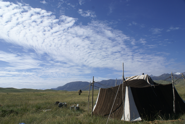 客人在進(jìn)帳篷前要把隨身攜帶的槍支、彈藥、牧鞭和生肉等取下交給主人代管。進(jìn)帳篷入座時(shí)要男左女右。當(dāng)主人請人用餐時(shí),客人不得隨意走動。每逢虎、狗、鼠、蛇日,不得搬帳篷。