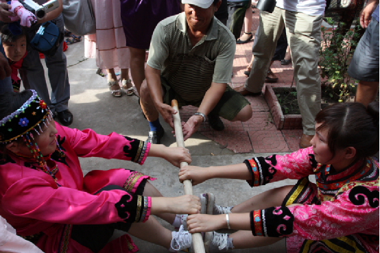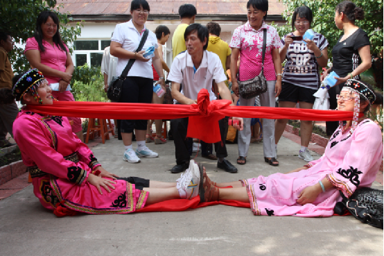 鄂倫春族特別喜歡體育活動,每當(dāng)狩獵閑暇的時(shí)候,便會開展各項(xiàng)體育比賽活動。兩三個人在一塊平地上,拿出一根皮繩就可以進(jìn)行跳繩比賽;在河邊撿起石頭就可以進(jìn)行投擲比賽;跳到河里又可以進(jìn)行游泳比賽。他們也很樂于進(jìn)行力的較量,摔跤,鄂倫春語稱“娟滴任”,這是獵人們普遍喜愛的一項(xiàng)運(yùn)動,常勝者會贏得人們的贊賞和姑娘的青睞。還有一種較力比賽,鄂倫春語稱“譚滴任”,俗稱“拽棍”。兩人相對坐在地上,雙手緊握一根約半米長的木棍,雙腳平伸雙足相抵。比賽開始,雙方拼力拽拉木棍,將對方拉起來為勝。