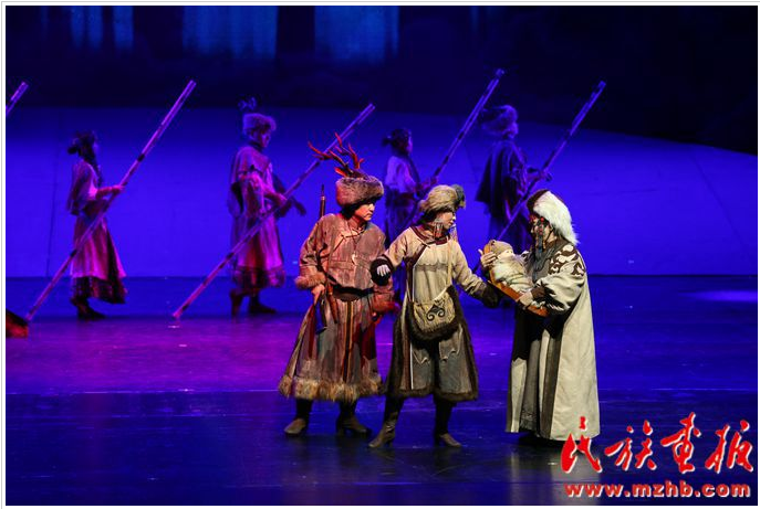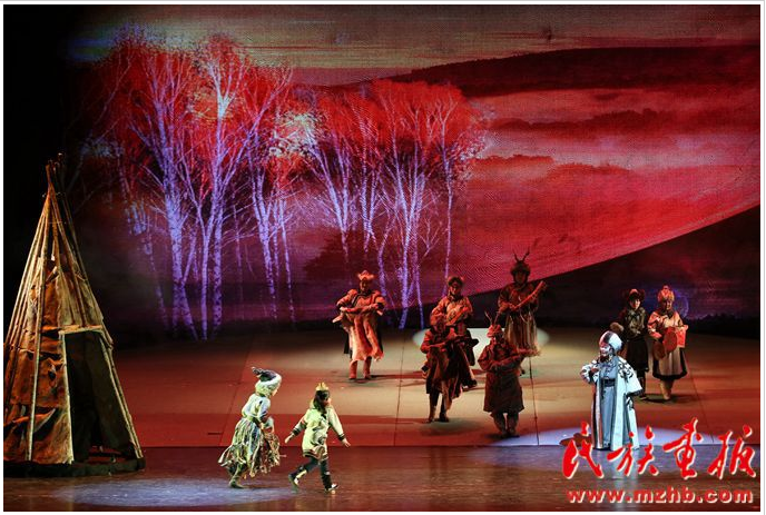 《山嶺上的人——鄂倫春》由內(nèi)蒙古自治區(qū)鄂倫春自治旗烏蘭牧騎創(chuàng)作于2016年,該劇由序、山語(yǔ)、林歌、人聲、尾聲五部分組成?!渡綆X上的人——鄂倫春》運(yùn)用現(xiàn)代的創(chuàng)作理念和表現(xiàn)手法,巧妙地運(yùn)用一個(gè)鄂倫春族嬰兒成長(zhǎng)的暗線(xiàn),將古樸凝重的民族文化與當(dāng)今的藝術(shù)元素結(jié)合在一起,生動(dòng)鮮活地展示了鄂倫春民族的勤勞勇敢、崇尚自然、豁達(dá)開(kāi)放、自強(qiáng)不息的民族精神和性格特征,呈現(xiàn)出了鄂倫春民族多彩輝煌的發(fā)展歷程。該劇立意新穎,特點(diǎn)濃厚,構(gòu)思巧妙,時(shí)尚唯美,有強(qiáng)烈的藝術(shù)感染力和舞臺(tái)表現(xiàn)力,是一部反映鄂倫春民族文化藝術(shù)發(fā)展的舞臺(tái)力作和藝術(shù)精品。