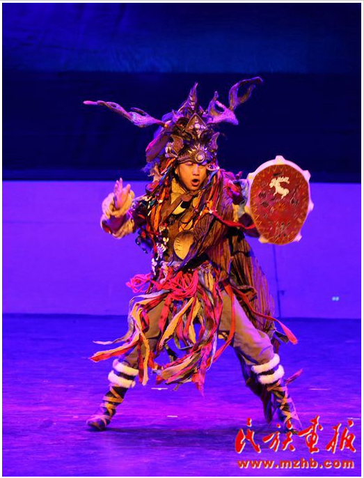 大型原創(chuàng)民族歌舞詩(shī)劇《山嶺上的人——鄂倫春》在國(guó)家大劇院上演,圖為歌舞詩(shī)劇第一幕《山語(yǔ)》之情景表演《圖騰印象》