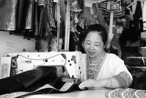 廣西柳州市融水苗族自治縣苗家小鎮(zhèn)是一個(gè)易地扶貧搬遷社區(qū),自2017年群眾陸續(xù)入住以來(lái),當(dāng)?shù)卣诩訌?qiáng)和完善基本公共服務(wù)設(shè)施的同時(shí),通過(guò)創(chuàng)辦扶貧車(chē)間、成立小微市場(chǎng)和鼓勵(lì)自主創(chuàng)業(yè)等方式,多措并舉保障和提升搬遷群眾的就業(yè)質(zhì)量,目前已實(shí)現(xiàn)“一戶(hù)一人就業(yè)”共1586戶(hù)3824人,占總戶(hù)數(shù)的98%。搬出大山的群眾迎來(lái)了新的生活,開(kāi)啟了新人生。蒙瓊丹是融水縣桿洞鄉(xiāng)桿洞村搬遷戶(hù),她在照顧兩個(gè)小孩讀書(shū)的同時(shí)開(kāi)了家苗衣店,月收入2000元。圖為8月30日,蒙瓊丹在制作苗族服裝。 龍濤攝影報(bào)道