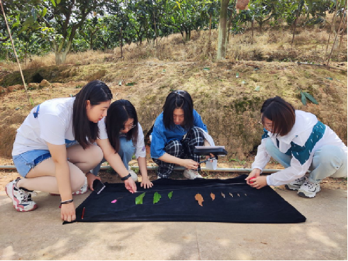 三是恩樂鎮(zhèn)玻烈村芒果種植地調(diào)研。9月4日上午,實踐團成員前往恩樂鎮(zhèn)玻烈村芒果種植地,對基地的病蟲害情況進行調(diào)研。調(diào)研中,種植戶向實踐團成員詳細介紹了基地的氣候條件、技術管控以及所使用的肥料和農(nóng)藥。通過種植戶的介紹以及實地觀察,實踐團成員結合所學知識,指出了種植基地存在的病害和發(fā)生規(guī)律,并給出了具體防治意見。