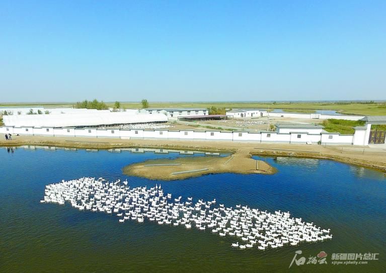 于田縣斯也克鄉(xiāng)稻田養(yǎng)鵝基地(10月14日攝)。該鄉(xiāng)和天山牧歌投資管理有限公司共同投資發(fā)展鵝產(chǎn)業(yè),帶動...