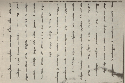 最初在蒙古貴族中傳授回鶻字母用以書寫蒙古語的是回鶻(《元史》作“畏兀”)人塔塔統(tǒng)阿。蒙古帝國建立后開始用回鶻式蒙古文記錄“札撒”(法令)、“青冊”(戶籍)、繕寫公文等。蒙古語同回鶻語關(guān)系密切,它們不但在類型上同屬粘著語,而且有大量的共同成分,語音系統(tǒng)也相似。因此,適用于回鶻語的字母,蒙古族使用起來也很方便。