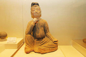 阿斯塔那墓出土的彩繪泥塑文吏俑。