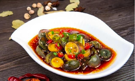 第二就是松花皮蛋。它是用新鮮鴨蛋加工腌制而成的一種生吃食品,因?yàn)榻?jīng)過了腌制加工,所以蛋清和蛋黃凝固靜皮,剝開不粘蛋殼,且富有彈性,所以簡(jiǎn)稱為“皮蛋”。