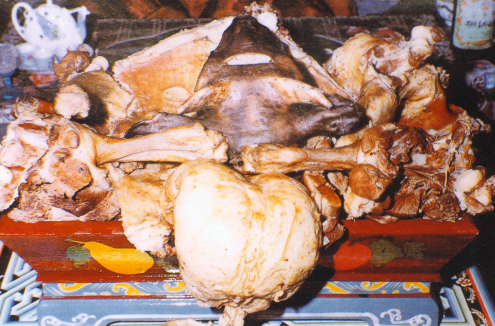 全羊席,又稱整羊席(蒙古語為“布禾勒”或“酥斯”),是蒙古人招待貴賓的傳統(tǒng)佳肴,也是蒙古民族最古老、最隆重的一道宴席,一般只在盛大宴會(huì)、隆重集會(huì)、舉行婚禮或接待高級(jí)貴賓時(shí)擺設(shè)。將整羊加工后擺在長方形的大木盤里,像一只臥著的羊,肉味鮮美,香飄滿堂。賓客在進(jìn)餐前,還要舉行一定的儀式,高唱贊歌,朗誦獻(xiàn)整羊祝詞等。據(jù)文獻(xiàn)記載,成吉思汗曾設(shè)過全羊宴。忽必烈登基時(shí),也設(shè)全羊宴祭神祇、待賓客。至清代全羊宴更加盛行,現(xiàn)已成為蒙古民族風(fēng)格接待貴賓的名貴菜肴,馳名中外。