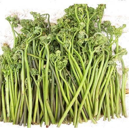 蕨菜又叫拳頭菜、貓爪、龍頭菜,屬于鳳尾蕨科。喜生于淺山區(qū)向陽地塊,多分布于稀疏針闊混交林。其食用部分是未展開的幼嫩葉芽。維西蕨菜野生在林間、山野、松林內(nèi),是無任何污染的綠色野菜,不但富含人體需要的多種維生素,還有清腸健胃,舒筋活絡(luò)等功效。蕨菜食用前經(jīng)沸水燙后,再浸入涼水中除去異味,便可食用。經(jīng)處理的蕨菜口感清香滑潤,再拌以佐料,清涼爽口,是難得的上乘酒菜。還可以炒吃,加工成干菜,做餡、腌漬成罐頭等。