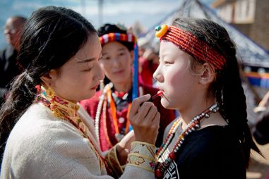 丹巴女子的成人禮(成年儀式)有著久遠(yuǎn)的歷史,也是一項(xiàng)傳統(tǒng)的選美、賽美活動(dòng)。成人禮一般以自然村落為單位,由活佛或者吉祥老人選擇吉日或是農(nóng)閑時(shí)間舉行。成人禮在藏語中稱為“幾薩”,是“穿成年新裝”的意思。當(dāng)?shù)貪h語又叫“戴角角”,意指行成人禮的女孩要梳扎像牛角一樣的發(fā)束,造型奇巧別致。小女孩長到16歲行過成年禮之后才算長大成人,才能夠戀愛結(jié)婚。所以,成人禮對每一個(gè)嘉絨姑娘來說都是人生歷程中的一件大事。嘉絨藏族非常重視對后代的教育,女人是部族的靈魂。所以女子成人禮充分體現(xiàn)嘉絨藏族關(guān)愛后輩、尊重女性的民間習(xí)俗,具有強(qiáng)烈的地域特色,顯現(xiàn)出鮮明的個(gè)性特點(diǎn)和母系氏族社會(huì)文化的基因。