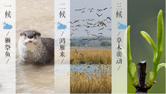 我國古代將雨水分為三候:“一候獺祭魚,二候鴻雁來,三候草木萌動?!?此節(jié)氣,水獺開始捕魚了,人們將魚擺在岸邊先祭祀后食用;五天過后,大雁開始從南方飛回北方;再過五天,在“潤物細(xì)無聲”的春雨中,草木因地中陽氣的上騰而開始抽出嫩芽。從此,大地漸漸開始呈現(xiàn)出一派欣欣向榮的景象。