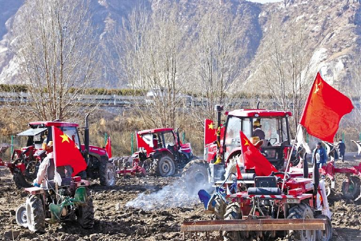 “現(xiàn)在國家大力支持農(nóng)業(yè)發(fā)展,不斷推進(jìn)農(nóng)業(yè)機械化,我們不僅不用自己耕地,而且效率和產(chǎn)量都提高了很多,我們家富余的勞動力外出就業(yè),一家人的生活也越過越好啦?!眳f(xié)榮村村民索朗曲培說。