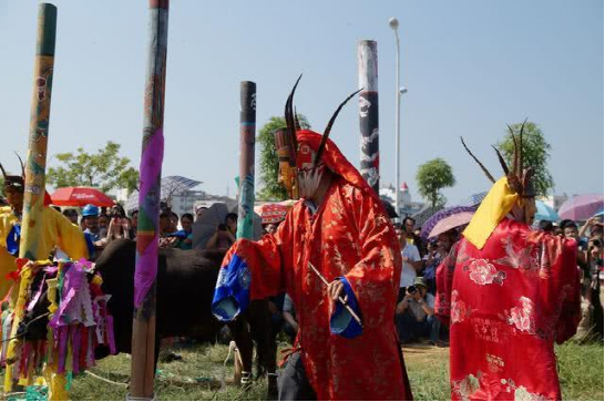 過節(jié)前一天,要“椎殺”一頭公牛,用牛頭、牛尾、牛腳、牛內(nèi)臟祭龍。祭時(shí)有法師喃經(jīng)、跳神。牛肉則分給各家各戶或拿到市上出賣,收入作為節(jié)日費(fèi)用。祭龍后二三天,各戶自拜祖先、三界仙、灶王、地主娘娘等,也是求神靈保佑五谷豐登。又用糯飯、粉蒸肉喂牛,以酬謝它耕作的辛勞,并給牛放假一天,讓它好好休息。嫁出去的女兒則帶上子女和禮品回娘家過節(jié),親戚朋友也常常登門賀節(jié),青年男女則盛裝聚會唱歌,選擇知音?,F(xiàn)在過此節(jié),宗教迷信活動(dòng)多已廢棄。增加了文體競賽或者開展有關(guān)生產(chǎn)生活方面的科普活動(dòng)等。