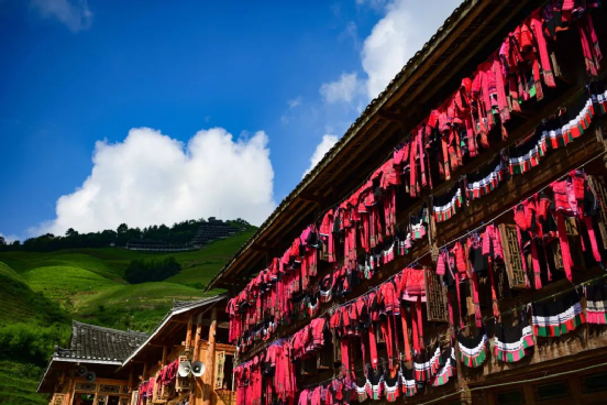 2014年,龍勝瑤族服飾(紅瑤服飾)以其精湛的手工藝和文化底蘊(yùn)入選國家級(jí)非物質(zhì)文化遺產(chǎn)代表性項(xiàng)目名錄擴(kuò)展項(xiàng)目名錄。如今的“曬衣節(jié)”已不僅是紅瑤的傳統(tǒng)佳節(jié),“農(nóng)歷六月六,廣西龍脊看紅衣”等曬衣節(jié)系列活動(dòng)已成為桂林山水游的一張名片,讓各地游客充分感受多姿多彩的民族風(fēng)情。紅瑤同胞們用自己獨(dú)特的方式,為中國共產(chǎn)黨成立100周年獻(xiàn)上自己的祝福。