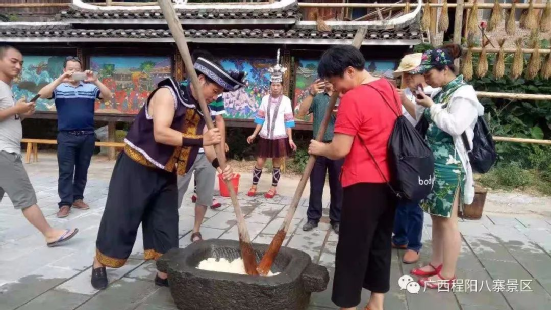 從程陽八寨民俗、民風、勞作、競技、婚戀等元素著手,結(jié)合景區(qū)實景,展現(xiàn)侗族原生態(tài)生產(chǎn)生活風情?!秸菟囍行?/p>