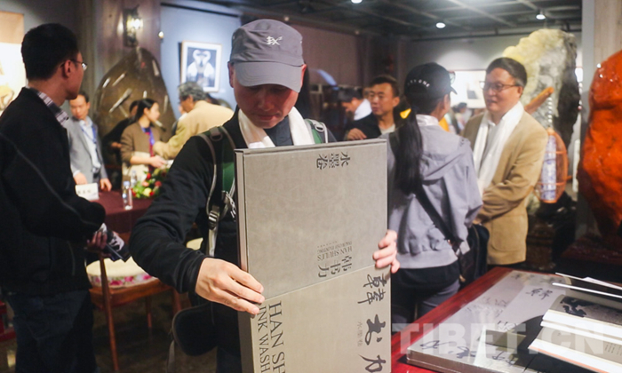 圖為展館內,參觀者正在整理得到的韓書力水墨畫冊。攝影:趙耀
