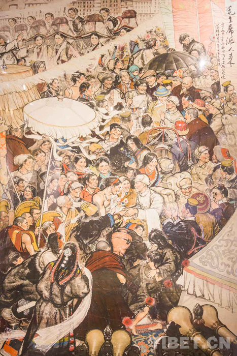 鑒賞展現(xiàn)場,不少前來參觀的畫家都是韓書力的學生或在一定時期曾受其教導?!?973年,我在西藏自治區(qū)展覽館見到了韓書力老師,第一次見面我就拜了師。我們一起下鄉(xiāng),我就給他當導游和翻譯。30幾年來,我一直在學習韓老師的繪畫技法,到現(xiàn)在還是他的學生。韓老師創(chuàng)作《毛主席派人來》時,我就跟在旁邊學習。學到了一些創(chuàng)作獨幅作品的技巧和手法,讓我受用至今。”西藏青年畫家計美赤列說。
