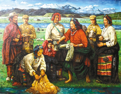 “以前畫畫時(shí),對自己的最高要求就是畫得要逼真,把油畫畫得像一幅放大了的照片,而現(xiàn)在關(guān)注的是如何畫出能體現(xiàn)當(dāng)代的畫面。西藏的美是無窮無盡的,我就想用繪畫的方式窮盡一生去追求,展現(xiàn)大美西藏?!比缃竦乃髀?,淡去了初出茅廬時(shí)一味追求畫面質(zhì)感的匠氣,多了些許內(nèi)心對西藏這片熱土深層次的思考。他筆下的西藏是一片充滿生機(jī)的土地,濃墨重彩之間,既有對傳統(tǒng)和過往年華的回望和懷念,又在仿若不經(jīng)意間透過一個(gè)眼神、一抹色彩、一個(gè)小物件盡情詮釋活力和希望。