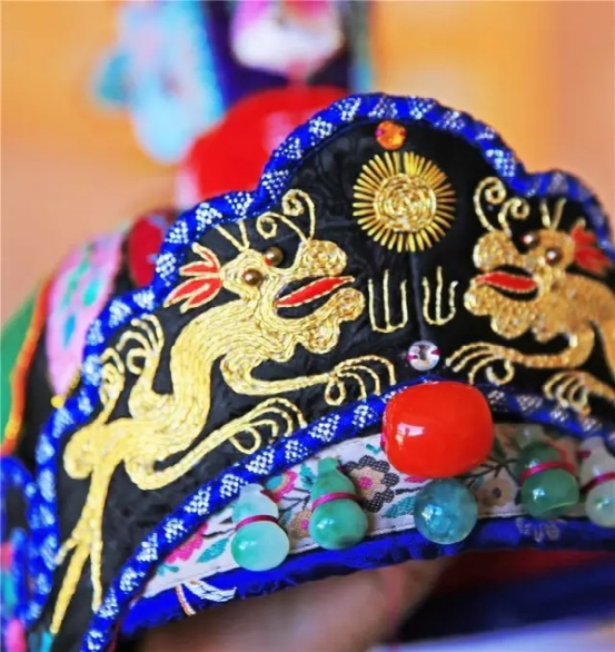 走進楊文煥的工作室,猶如進入一個明媚鮮艷的夢境。首先映入眼簾的,便是那一頂頂色彩鮮艷、繡工精致的童帽:造型大方、線條流暢的獅子帽;色彩明艷、虎虎生威的老虎帽;精巧別致、活潑可愛的翹尾帽;高雅富麗、古韻悠長的公子帽;別具一格、特色鮮明的牌坊帽。